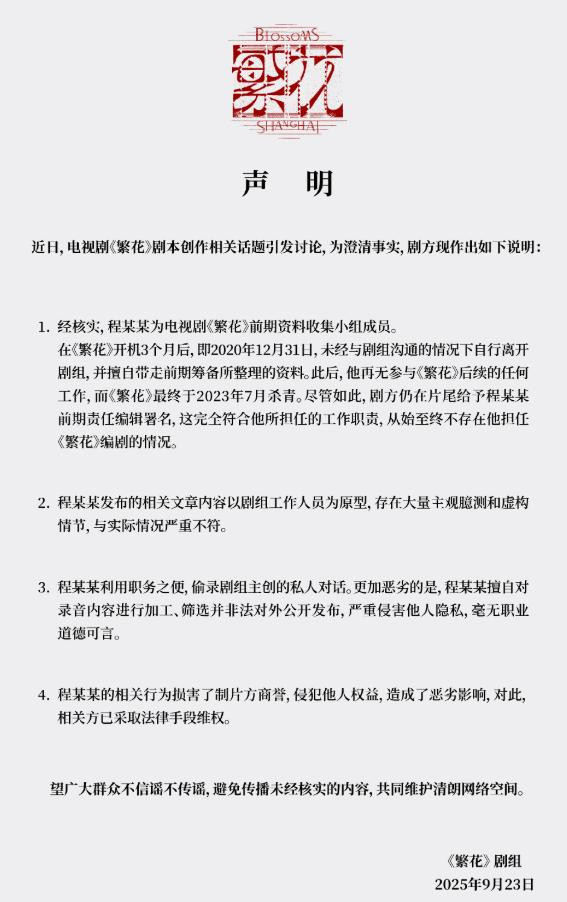 反而是在古二的社交账号被封禁后,《繁花》剧组才开始严正声明,称古二只是前期收集资料的人,这先堵嘴后发声的行为还真是“典”啊。